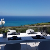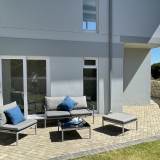 Mit vier großzügigen Schlafzimmern und drei eleganten Badezimmern bietet The Blue House Platz für bis zu sechs Gäste. Die voll ausgestattete Küche lädt zu gemeinsamen Kochabenden ein, während das offene Wohnzimmer mit großen Fenstern und einem Blick auf das Meer und die gepflegte Umgebung eine luxuriöse Atmosphäre schafft. Der Außenbereich besticht durch eine weitläufige Terrasse und bequeme Sonnenliegen – ideal für gesellige Abende im Freien.
